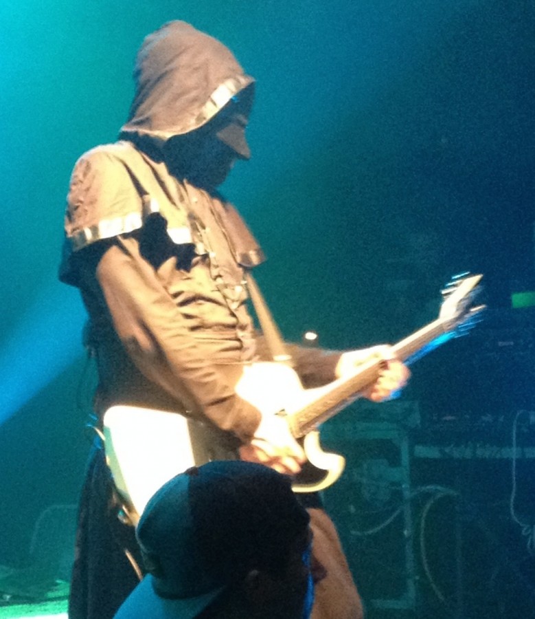 I have to tell you about a few observations from the crowd, though. This is where it gets a bit weird. Playing into the Ghost mythos, there were a few people dressed in costumes. I found that amusing. Two teenagers dressed as Nameless Ghouls actually had impressive enough outfits that they fooled some drunks into thinking they were in the band after the show. That made me smile. The crowd was also a bit rowdy at times, as can happen in a packed pit. At one point, Papa leans down to the center of the crowd and says “Everyone here okay?” He then looked right at a few dudes right next to me and murmured “Behave.”