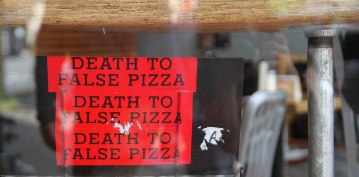 Portland is known for a lot of things these days, but on the way there I didn’t expect a metal-themed pizza parlour to be one of them. Lo and behold though, there was Sizzle Pie openly declaring DEATH TO FALSE PIZZA! Oh, is that sentiment ever needed in Toronto, where it often feels like the crappy-pizza-franchise capital of the world. Of course, Sizzle Pie have a respectable selection of local craft beers on tap.