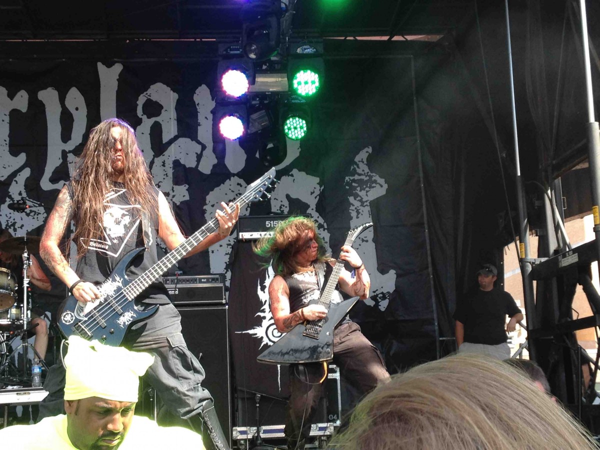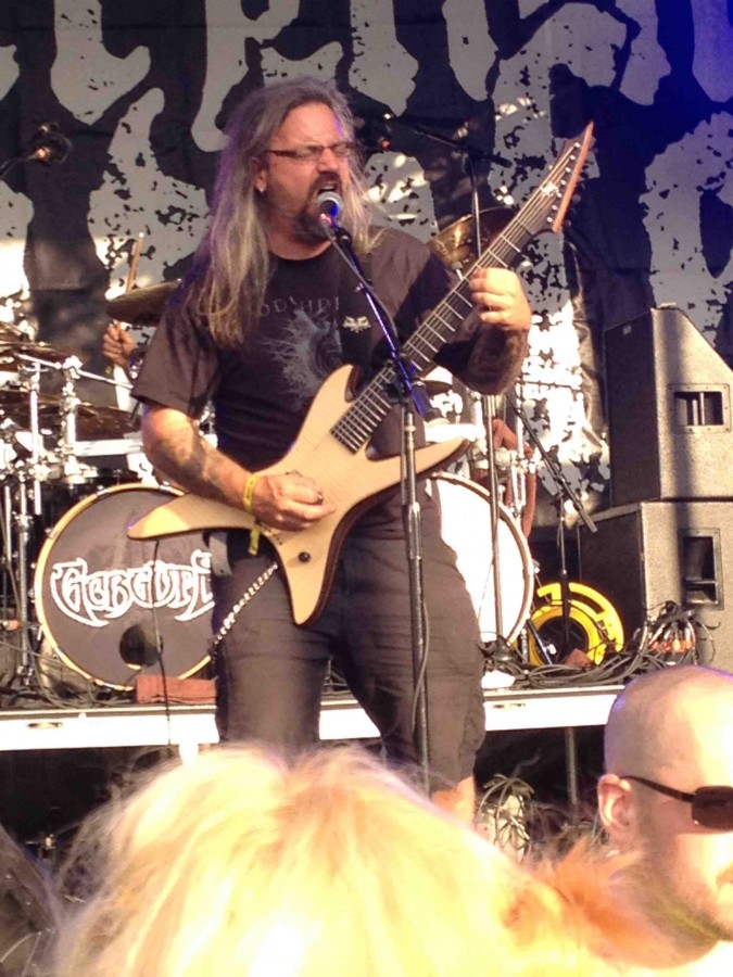 Ben Falgoust of Soilent Green told me it’s been three years since the band played live. He told me he littered the front of the stage with lyrics so he wouldn’t forget them. You can’t blame him; he’s made his bread by being a road warrior for sludgy black metallers Goatwhore. Yet, it is the former band that graced the Maryland Deathfest stage, and I must say that they did not disappoint either. The bluesiness in their riffs was there. The groove was massive. And there might have been a little pot smoke floating around as well. Welcome back to the stage, Soilent Green.