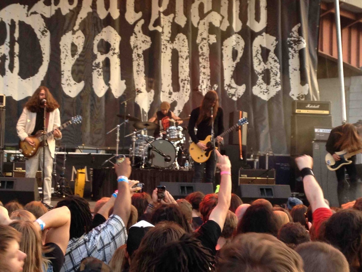 And as the sun began to set on the final day of Maryland Doomfest, the doomed rose again. Uncle Acid and the Deadbeats made their first American appearance. I didn’t know how they’d be. Their vocal approach is so unique, that I had my doubts on how well they’d execute live. They were the second “Holy shit!” moment of the day. Maybe the pot smoke around me was getting to me, maybe it was the sunset behind the band, maybe it was the sweet blues solos emanating off the guitars, I don’t know. Uncle Acid nailed it. And the vocals were beautiful. They couldn’t have been more different from Gorguts. It was like I was watching an old blues band do their thing on the MDF stage. But it had just enough of a metal attitude that it fit perfectly. And even though they confused the hardcore moshers in the pit, everyone else seemed mesmerized by the sound on stage. I already liked what I had heard from this band. Now I am a full-on acolyte to the Church of Uncle Acid.