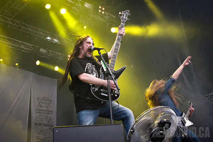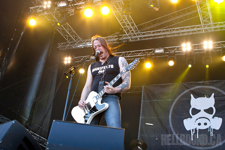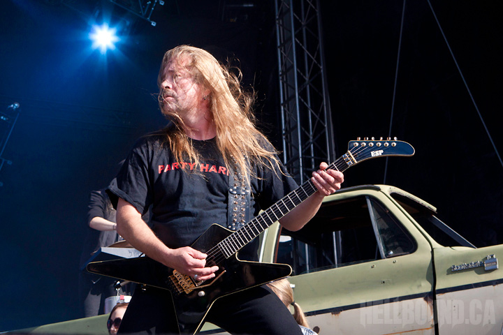 I got back outside in time to catch “Bodom After Midnight” and “In Your Face” from Children of Bodom and then walked briskly over to the Inferno stage for Carcass. Does anything really need to be said about these guys? It’s Carcass. They apologized for the whole melodeath thing that happened after Heartwork which was pretty funny. Even if Jeff is honestly sorry, there was and still is a lot of great melodeath that shouldn’t be apologized for. But hey, IT’S CARCASS. They played a bit from every album except Swansong, which I guess doesn’t really fit in with the rest of their material even though I think it’s a fantastic album despite the shit that it gets. The set was a bit heavy on the Surgical Steel and Heartwork albums, but that’s not surprising. From the beginning of 1985 through their closing with Heartwork it was non-stop excitement for the band and crowd. These guys are professionals in every sense of the word. If you get a chance to see Carcass — take it. You never know when they may retire again.