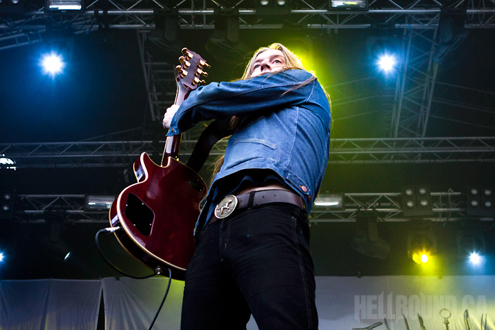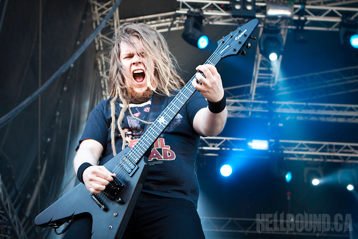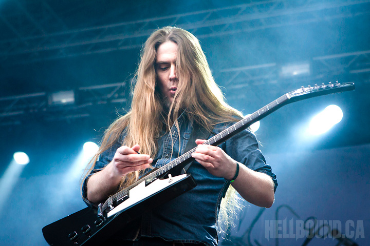 I wanted to catch a bit of the Faroese band, Hamferð, so I ran over to the Club stage during Bodom’s set to see a few songs. Like I mentioned in the Day Zero review, the vocalist for Hamferð is also the new vocalist for Barren Earth. First thing that was pretty noticeable — they’re all in suits. While it was nice and cool outside, the heat was increasing in the Club area and those suits had to be hot and not really comfortable. They’re a death-doom band with clean vocals similar to Messiah Marcolin (ex-Candlemass/ex-Memento Mori) but with a bit less vibrato and everything else residing somewhere between My Dying Bride and a slower Novembers Doom with a dash of Dance of December Souls-era Katatonia. I’m still soaking in their album Evst, which is really fantastic and I recommend it highly to any fans of the death-doom sound. The sound was perfect for these guys and I think that if they were to have played outside, that ambiance that they had would have been lost. I really want to see these guys again — so if you get the opportunity you should go.