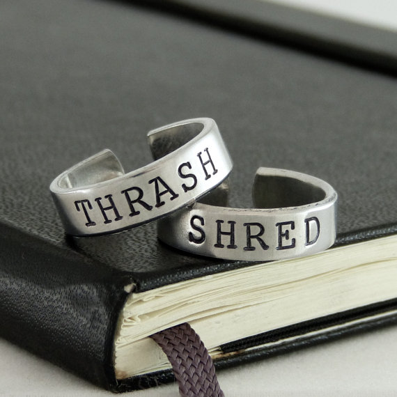 As Renee suggested, Etsy is a great place to find some unusual metal gifts. Here are a few items that caught my eye: Thrash and Shred Rings, the Cattle Decapitation Pillow, the Black Metal Piggy Bank, and (how could I resist?) the My Cat Listens to Metal Sweatshirt.