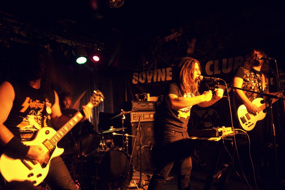 With support from IDNS and Chainbreaker, who were a great way to get the crowd amped up, Detroit’s Acid Witch made their first ever appearance outside of the United States. Fans packed into Toronto’s Queen Street standby, the Bovine Sex Club, for a Saturday night they’re not likely to forget anytime soon. I know that personally I’ve been waiting to see this band, which I’ve so far found best described as “Halloween Metal” (they did make it onto our Hellbound Halloween Playlist repeatedly) and though I went in apprehensive, I left totally blown away.