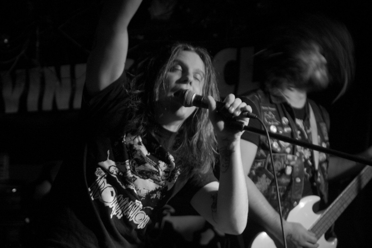 Not this time. An evil presence took over the small club. Bursting forth with “Sabbath of the Undead,” the crowd was in a frenzy of energy. Feeding seemingly off of the unstoppable Slasher Dave and his spooky growls, their bubbling beastly brews flowing freely, the headbangers were delighted. It was party time.
