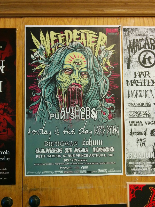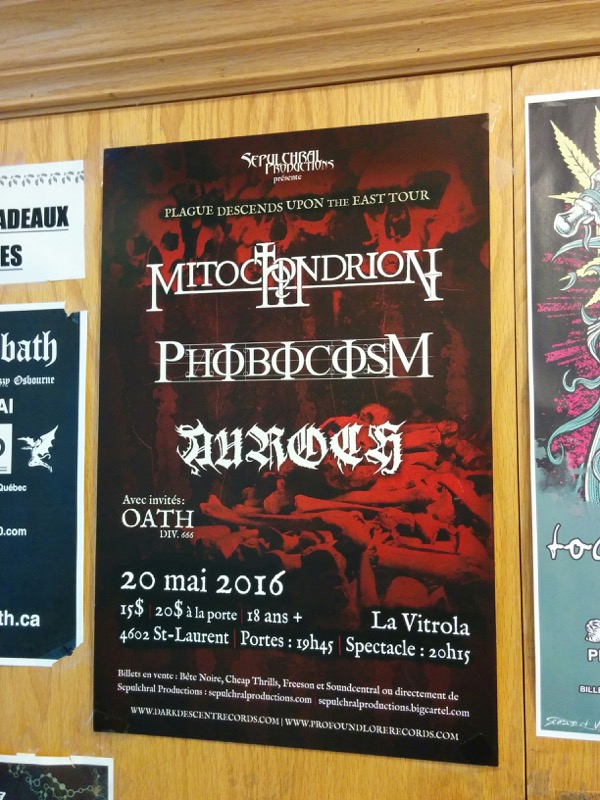 Soundcentral and Freeson Rock both displayed event posters and flyers advertising the wealth of live heavy music on offer while I was in Montreal. I almost ended up attending www.pouzzafest.com by accident (though I knew it was going on), as I happened to walk past Katacombes and the outdoor stage while bands were performing. I could hear the music from blocks away, even before the waves of black and khaki and ripped clothing came into sight.