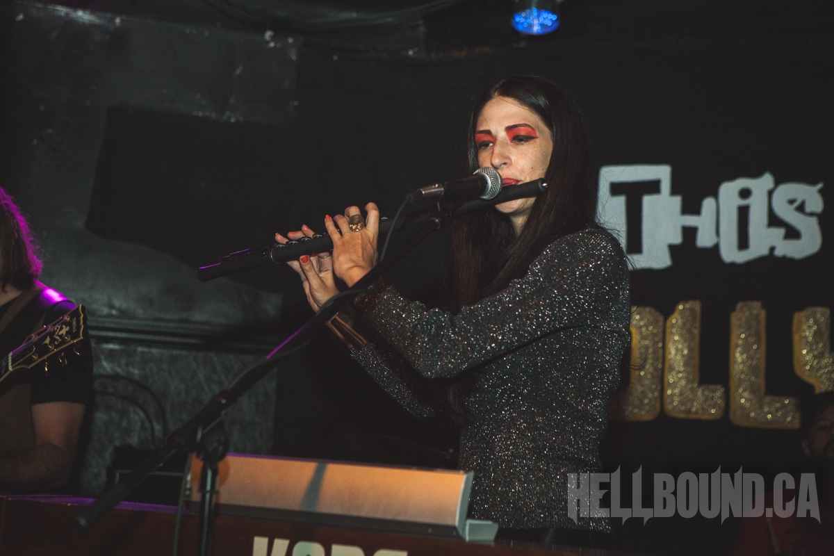 After the Monsters of Schlock performance, but before the costume party, Blood Ceremony took to the stage. If I’m not mistaken, this was the band’s first live appearance in Hamilton. Both the venue (This Ain’t Hollywood) and the event (the Dark Carnival Shocktail Party) provided an ideal atmosphere for Blood Ceremony’s eerie balladry.
