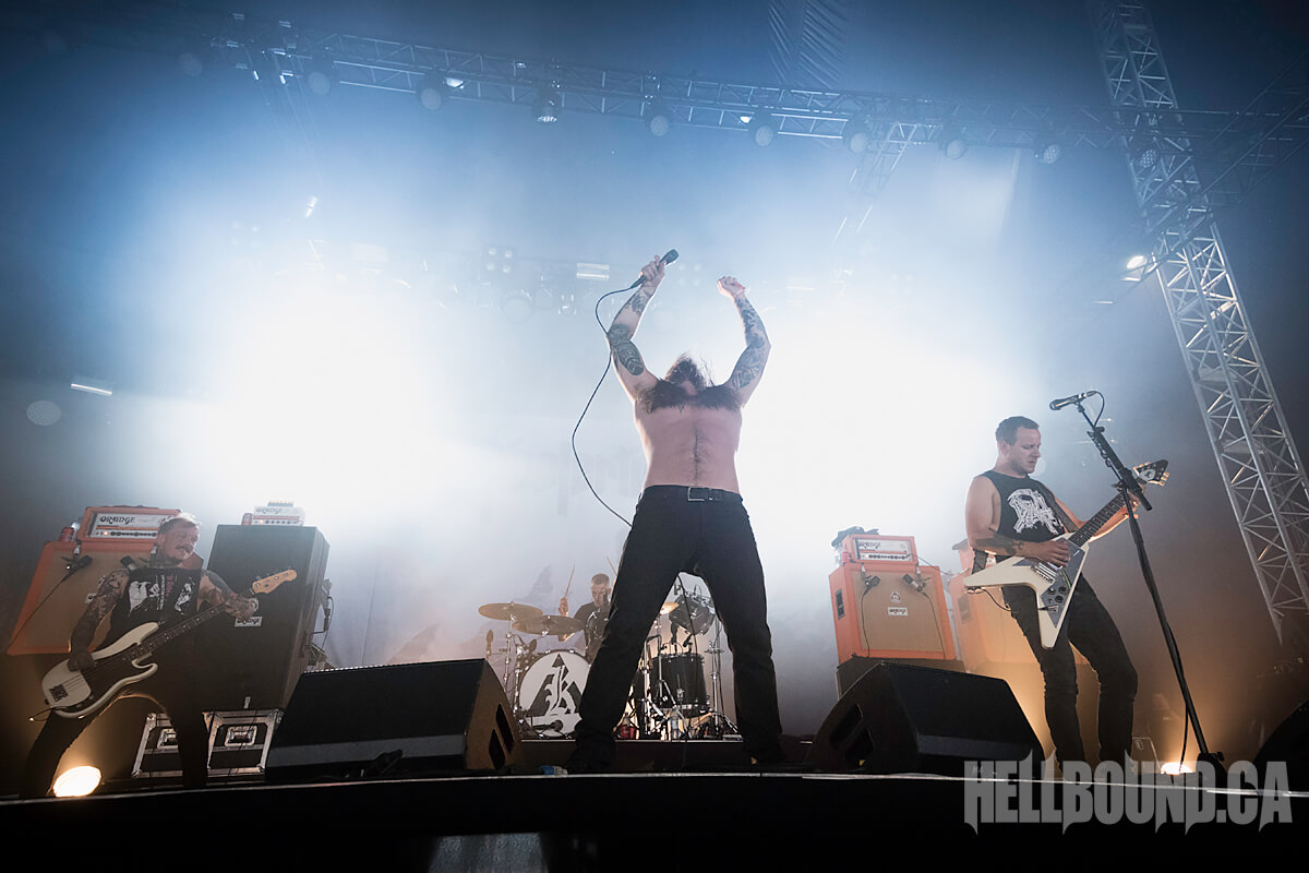 One of the bands I had really been looking forward to seeing again was Ireland’s Primordial. I’ve only seen them once before and that was at ProgPower USA many years ago. Sunlight doesn’t seem like frontman A.A. Nemtheanga’s preferred time of day for a performance — but the band brought all the darkness they needed. Nemtheanga’s main goal always seems to be to force everyone to feel the suffering that the Irish have endured over the centuries. Anyone who has spent any time reading through the lyrics or paid attention to what he says between songs will echo that sentiment as well. Once again — a spectacular set. One of the better sets at Tuska for sure — and I really hope they come back sooner rather than later. If I could conduct the weather — I’d make it a rainy, late sunset on the cusp of darkness, and cold. That’s the weather I’d want to see these guys proper.
