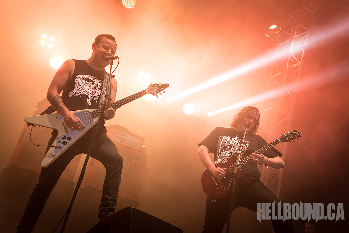 Next up was Tsjuder — a band I still struggle with pronouncing. The band sticks to the tried and true sound established by bands such as Darkthrone and Immortal, but I haven’t spent enough time listening to them to give a good indication beyond that. Either way, their sound and light show was fantastic. I don’t want too much light in a black metal show — some might argue none at all. But they got it just right.