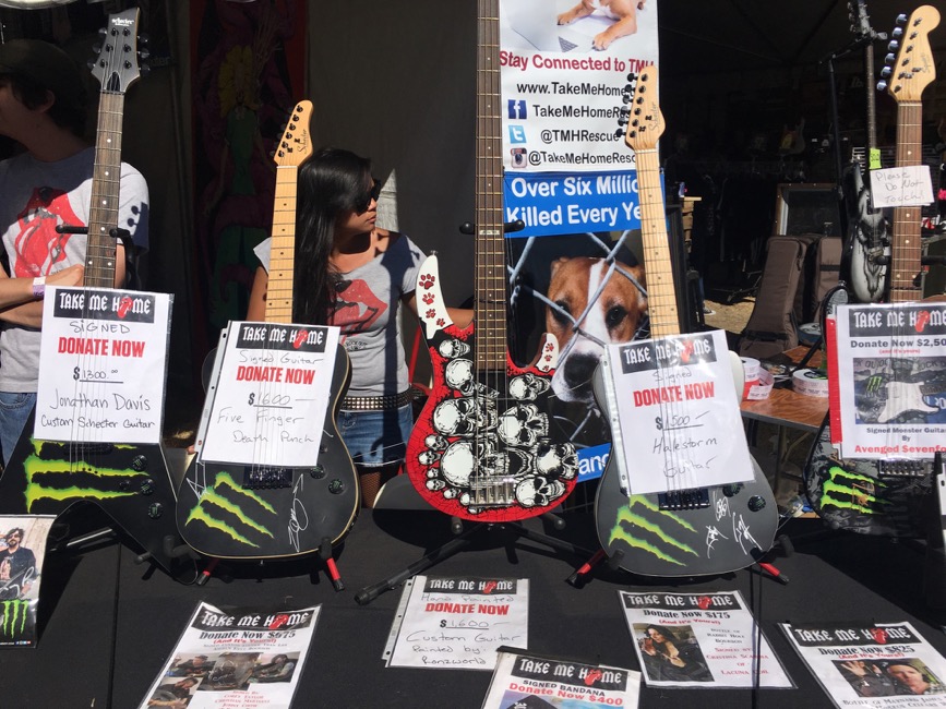 Other vendor booths of interest included the Take Me Home animal rescue booth. They were taking donations and raising money by offering up custom, one-of-a-kind and “game used” instruments signed by artists that were playing Aftershock, with all proceeds going directly to the animals and their cause. Festival-goers could pick up a signed guitar from Five Finger Death Punch for around $1600, or a Halestorm guitar for around $1500, or any number of lower-tier items like signed drum heads, shirts, and an assortment of other goodies. This booth, as you can imagine, was very popular and the cause is very noble.