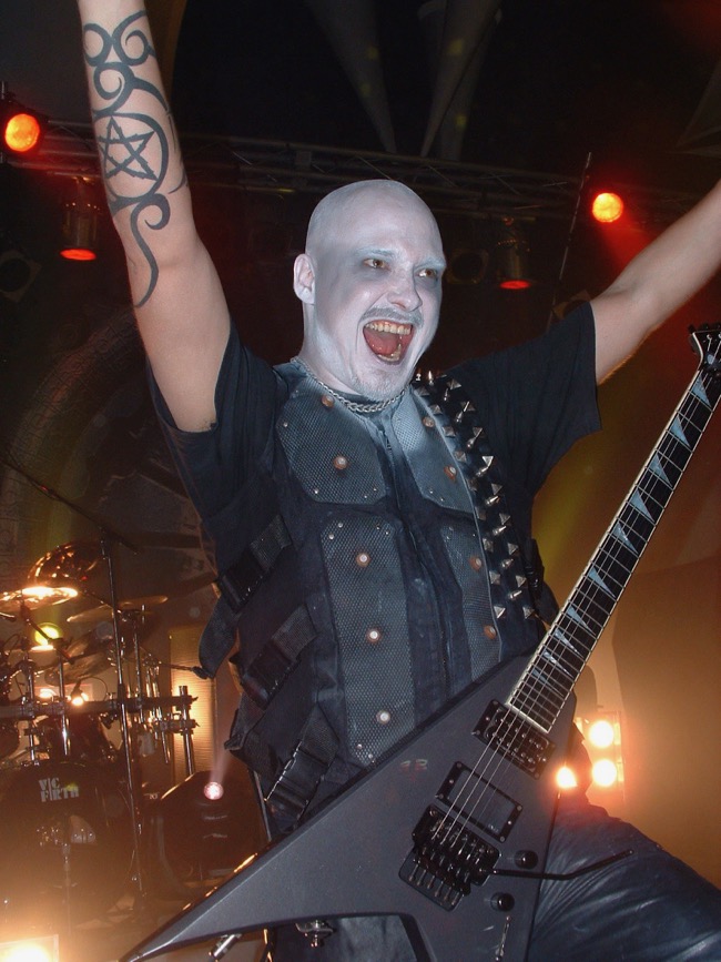 While you may be able to buy a Dimmu Borgir bikini, the band’s music absolutely does not bring to mind images of sunny beaches, nor are their songs as brutally raw as the work of more traditional “true” Norwegian black metal bands. Instead, albums like the latest Death Cult Armageddon or Puritanical Euphoric Misanthropia tend toward the epic and grandiose, complete with bombastic arrangements and orchestra performances. Shagrath explains that it’s all about doing things differently. “First of all we’ve been a band that existed for eleven years, and most of us guys have been into this underground scene for a long, long time. There are a lot of good black metal bands out there but we have chosen to work our own part. We mix the different music styles together, everything from heavy metal to thrash metal to death metal, black metal and everything. We want to explore new territories in music, and we don’t want to repeat ourselves too much either. It’s important for us as musicians to do that. It’d be boring to just do the same thing over.”