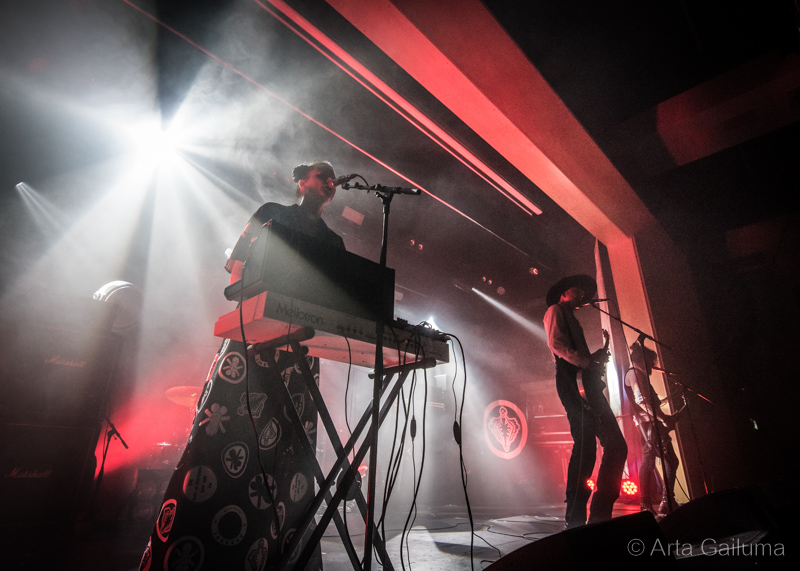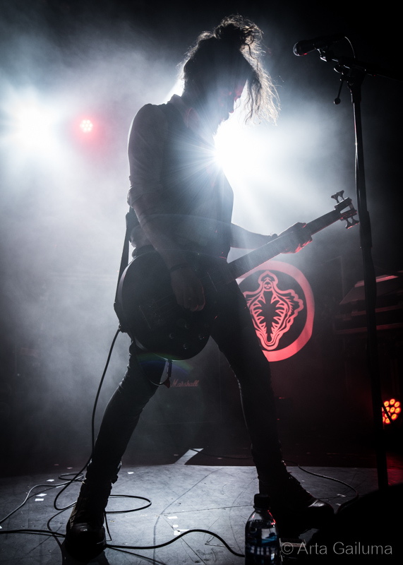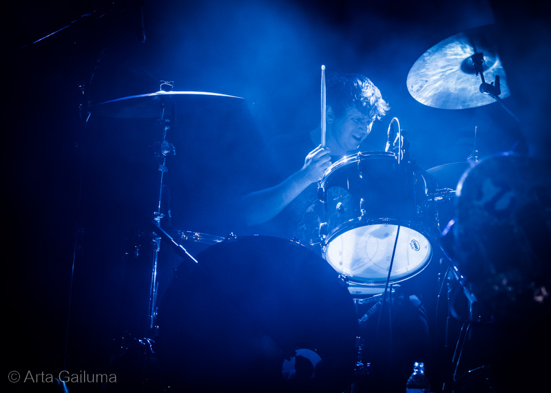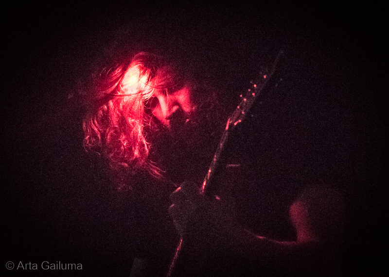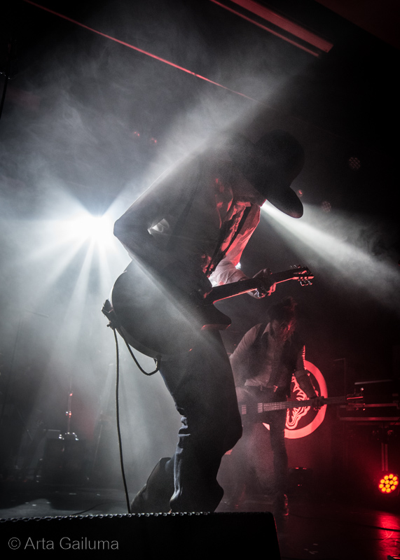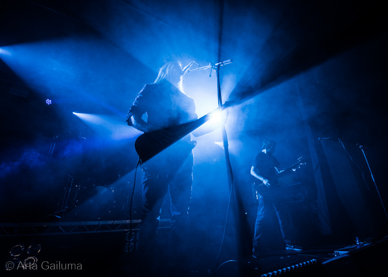 Quite a unique stage presence from the French quartet Celeste with completely cutting the house lights with only red backdrop in the occasional strobe flash and a red glare from their head torches.