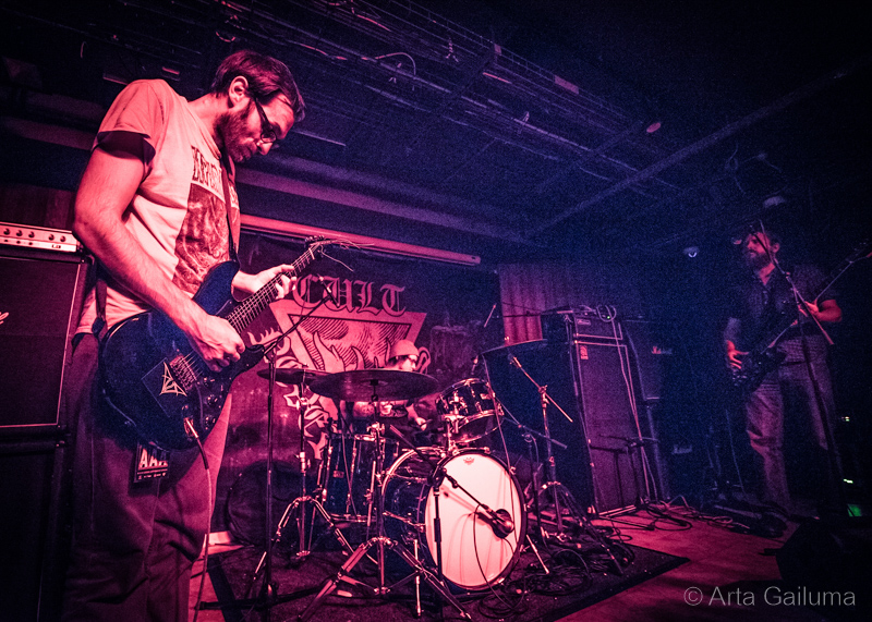 The tiny Cult Never Dies Stage was completely sinking in smoke and one could tell that local Leeds post metallers Hundred Year Old Man were on it only by the droning riffs filling the small basement room.