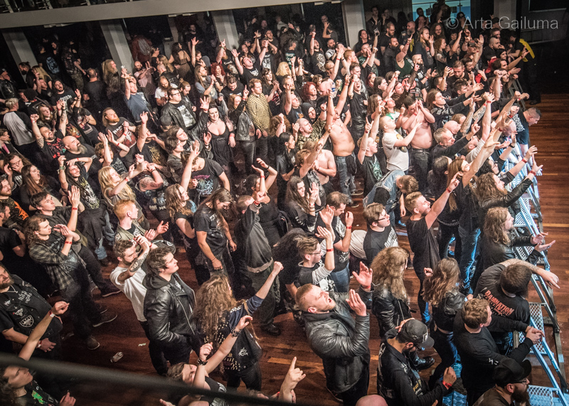 Austrian thrashers Insanity Alert were definitely alerting some insanity going on in the basement where Cult Never Dies Stage was located. Their obvious goal was to stir up the crowd and they did succeed, especially, with their own take on Iron Malden classic when the polystyrene boards with slogans “Run to the pit” and “Mosh for your life”came out.