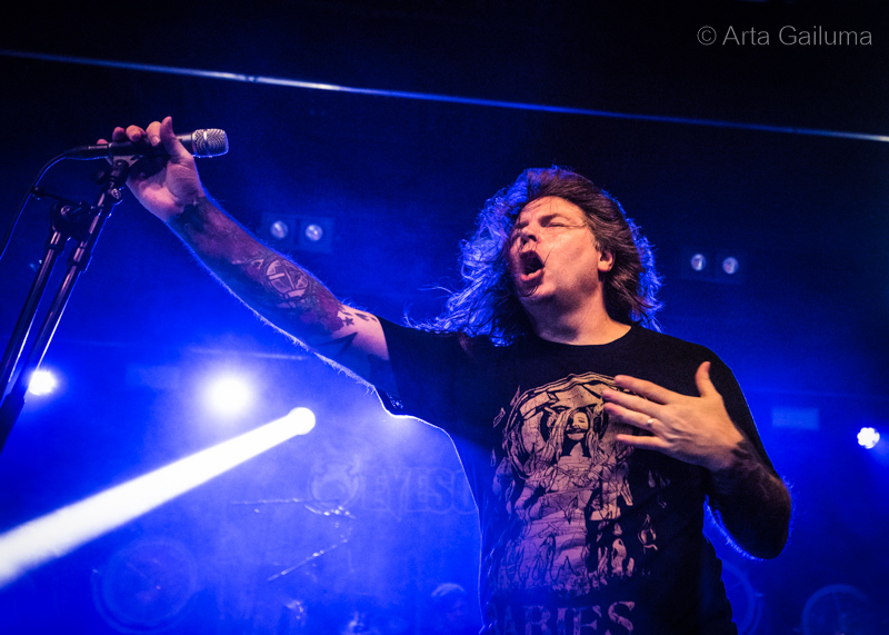Celebrating their 30th anniversary with a special one-off show, Cancer were opening the Jägermeister Stage. A day after the launch of their first album in 13 years — “Shadow Gripped” released via Peaceville Records , they did put on one hell of a show. Unfortunately, a fire alarm derailed their set forcing everyone outside for some good 15 minutes.