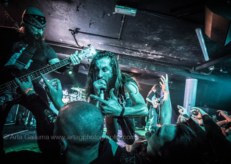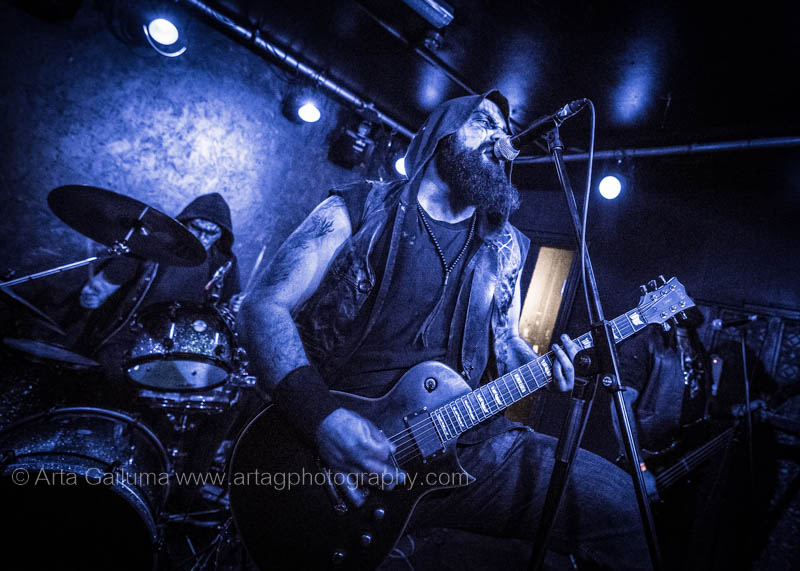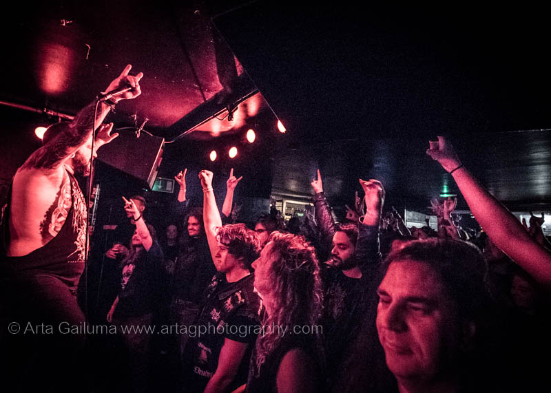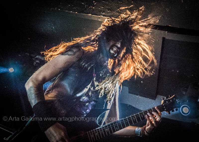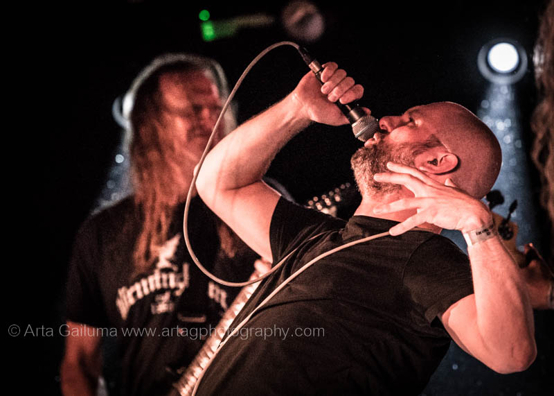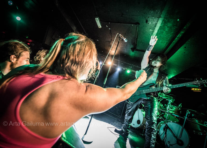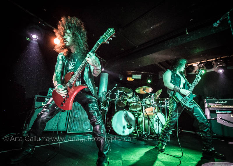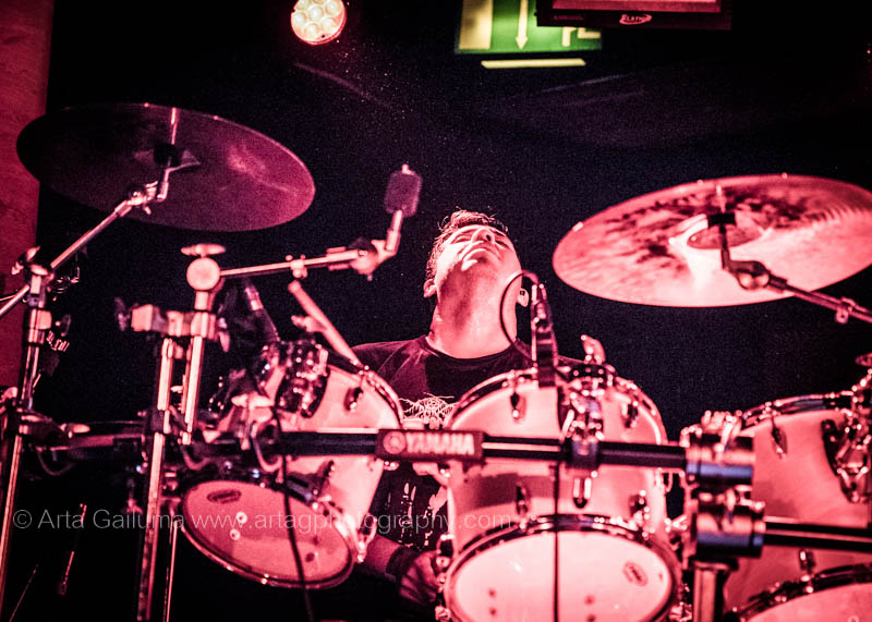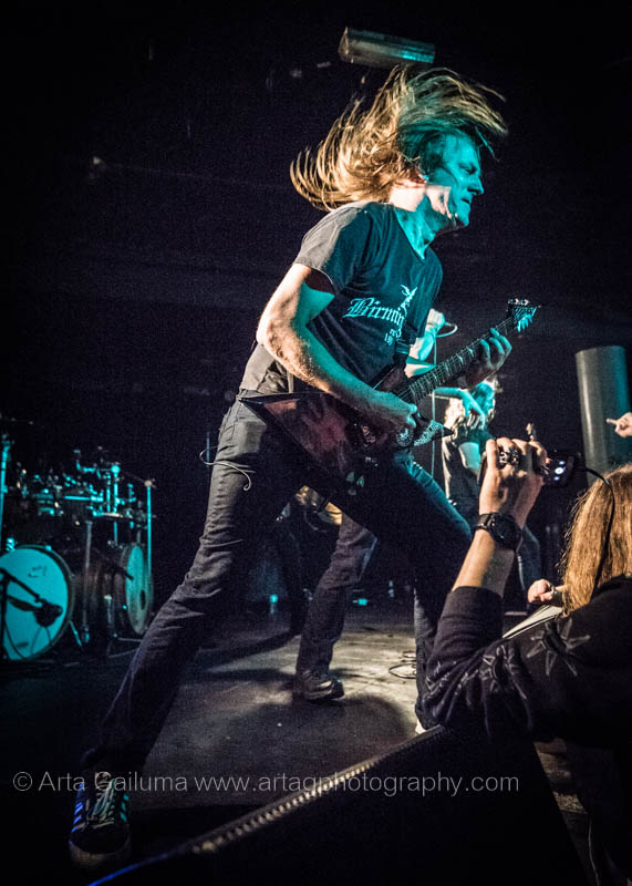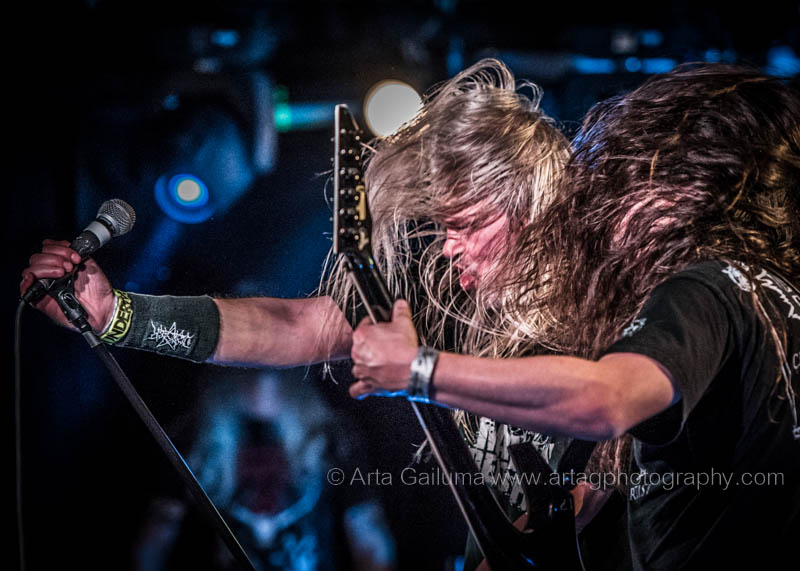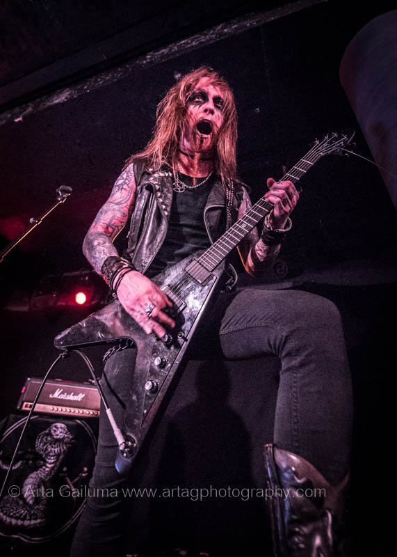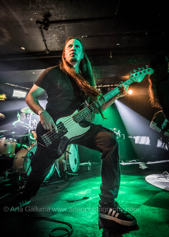 The 500 capacity venue The Underworld was ram packed tonight to see headliners Dutch thrashers Asphyx with their drummer Husky from mighty Sodom tear the place down. The hair was flying, fists pumping the air and the crowd was going wild. The mid height stage was perfect for fans to claim on it and jump into the stretched out arms for a crowdsurf.