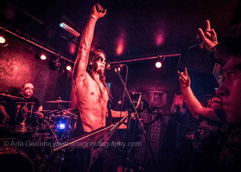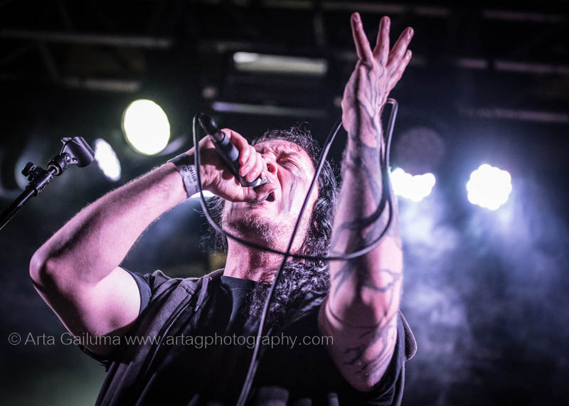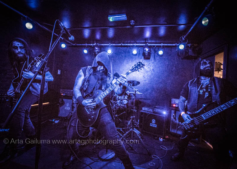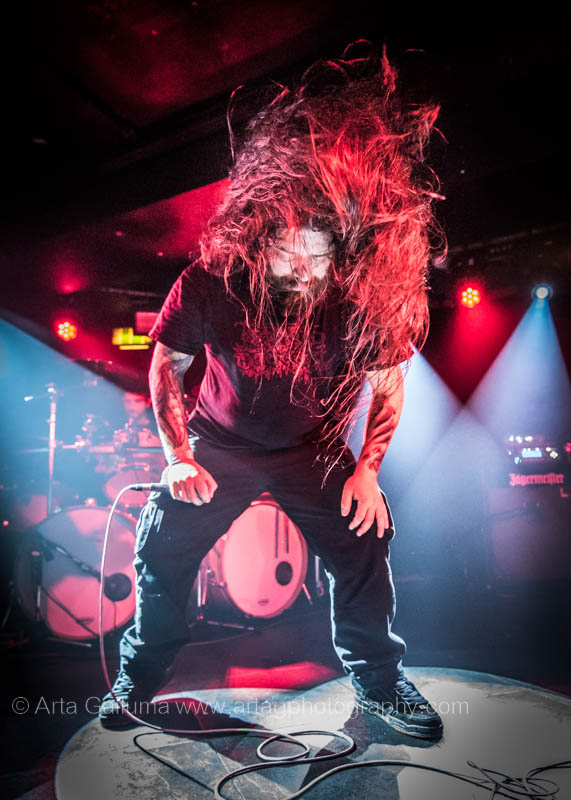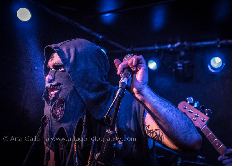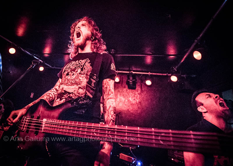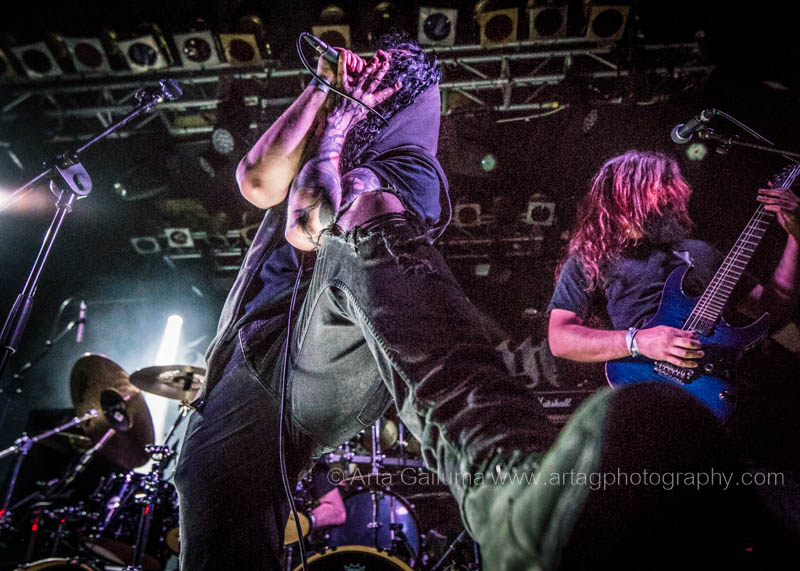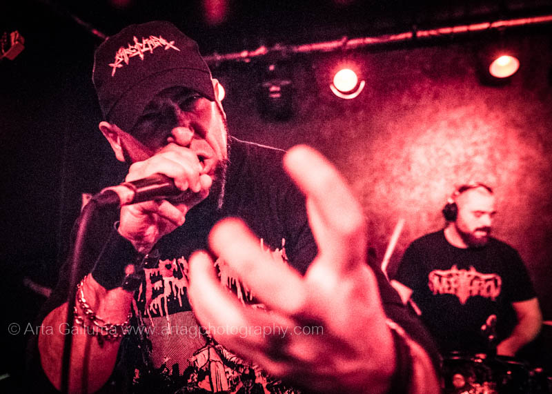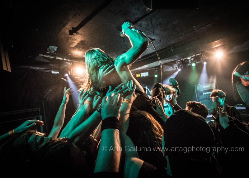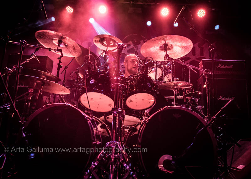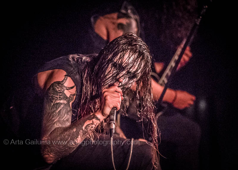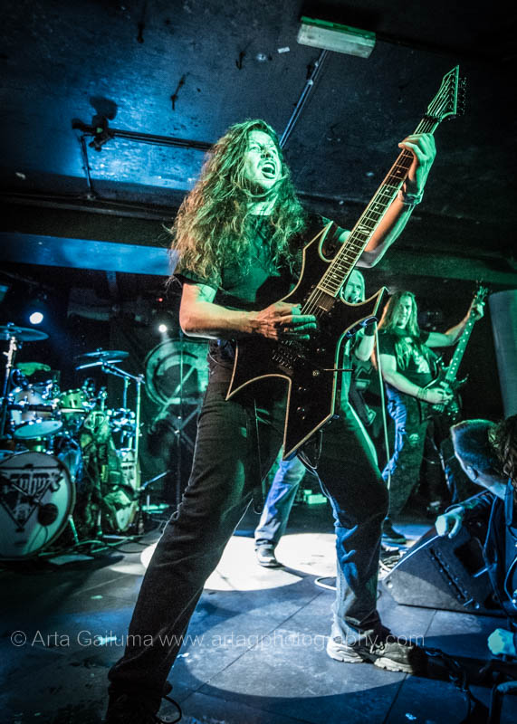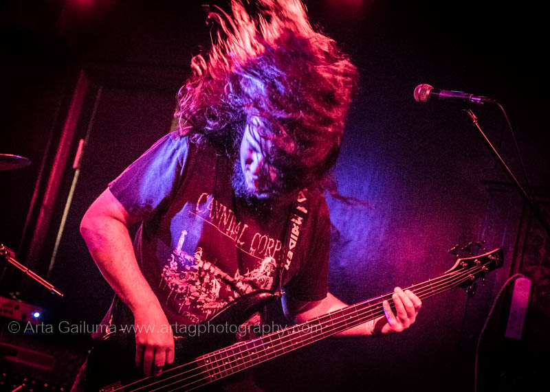 The 500 capacity venue The Underworld was ram packed tonight to see headliners Dutch thrashers Asphyx with their drummer Husky from mighty Sodom tear the place down. The hair was flying, fists pumping the air and the crowd was going wild. The mid height stage was perfect for fans to claim on it and jump into the stretched out arms for a crowdsurf.
