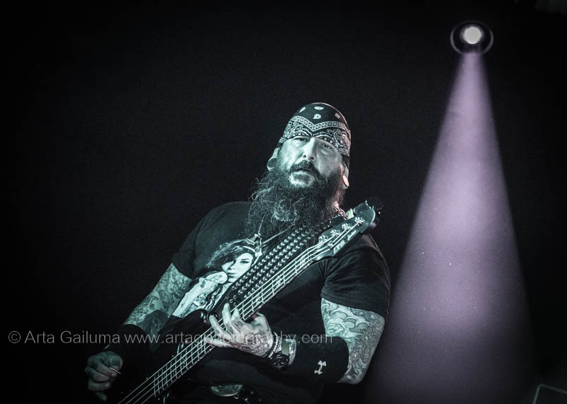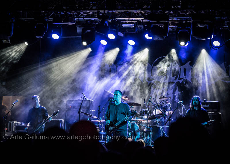 Next on the main stage were Winterfylleth, one of Britain’s best black metal bands. Their name, meaning in Old English “Winter Full Moon,” describes the band’s atmospheric icy riffs perfectly. The stage lights maintained a purple-blue tone while the band ran through their 5-song long set.