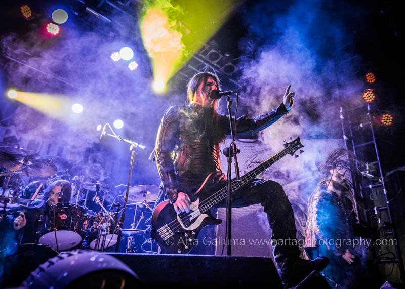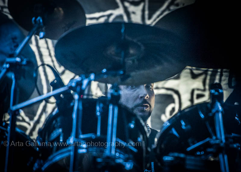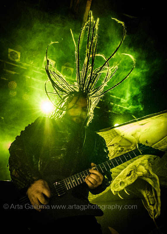 The performance of Greek symphonic death metallers Septicflesh was very lively, dynamic and colourful. The visuals truly complemented their music, the flashing lights were changing from bright red to yellow and green and in between smoke cannons were shooting in the air while the band was telling the tales of ancient gods.