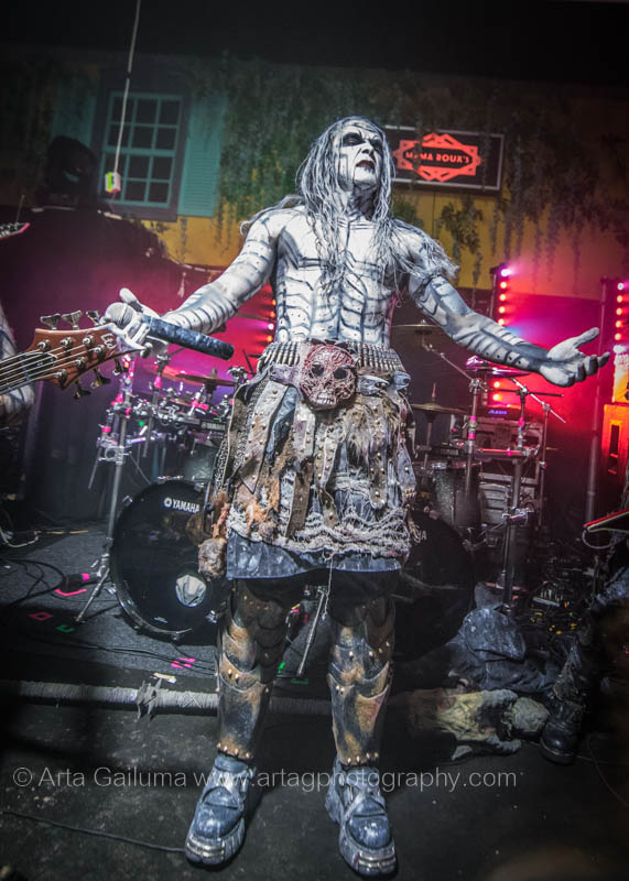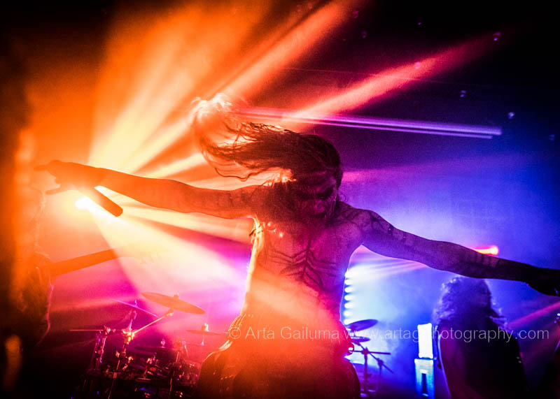 For those who don’t know, Carach Angren do use a lot theatrics at their stage shows whilst their music is incorporating symphonic and orchestral elements and lyrical themes are dark and based on mysterious stories. It was no different in Mama Roux, the use of masks made by their own frontman Seregor, the creepy face paint and grimacing and certainly the stylized “killing” at the “Blood Queen” song may have sent shivers down the spine, but made the whole thing a brilliant experience.